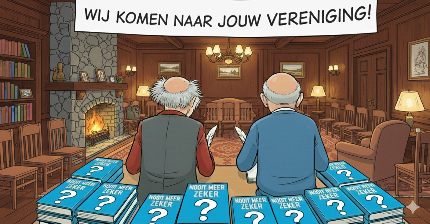 Stuur gewoon een mailtje naar info@nooitmeerzeker..com We zijn getraind om snel te reageren. Want ons boek is klaar;